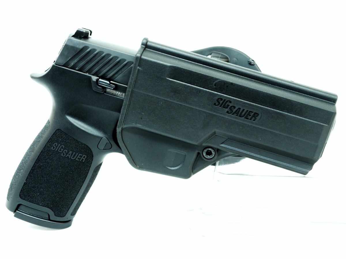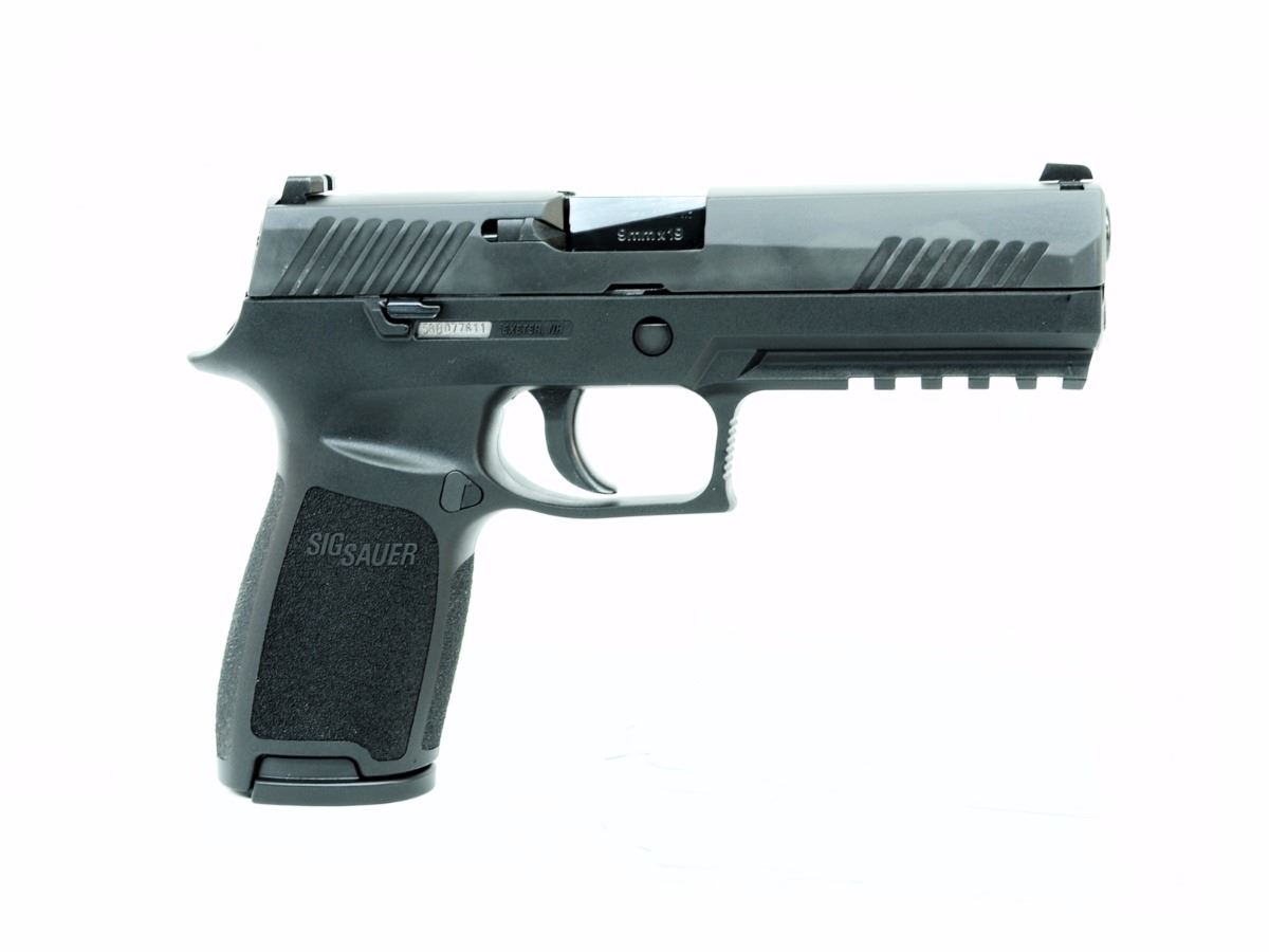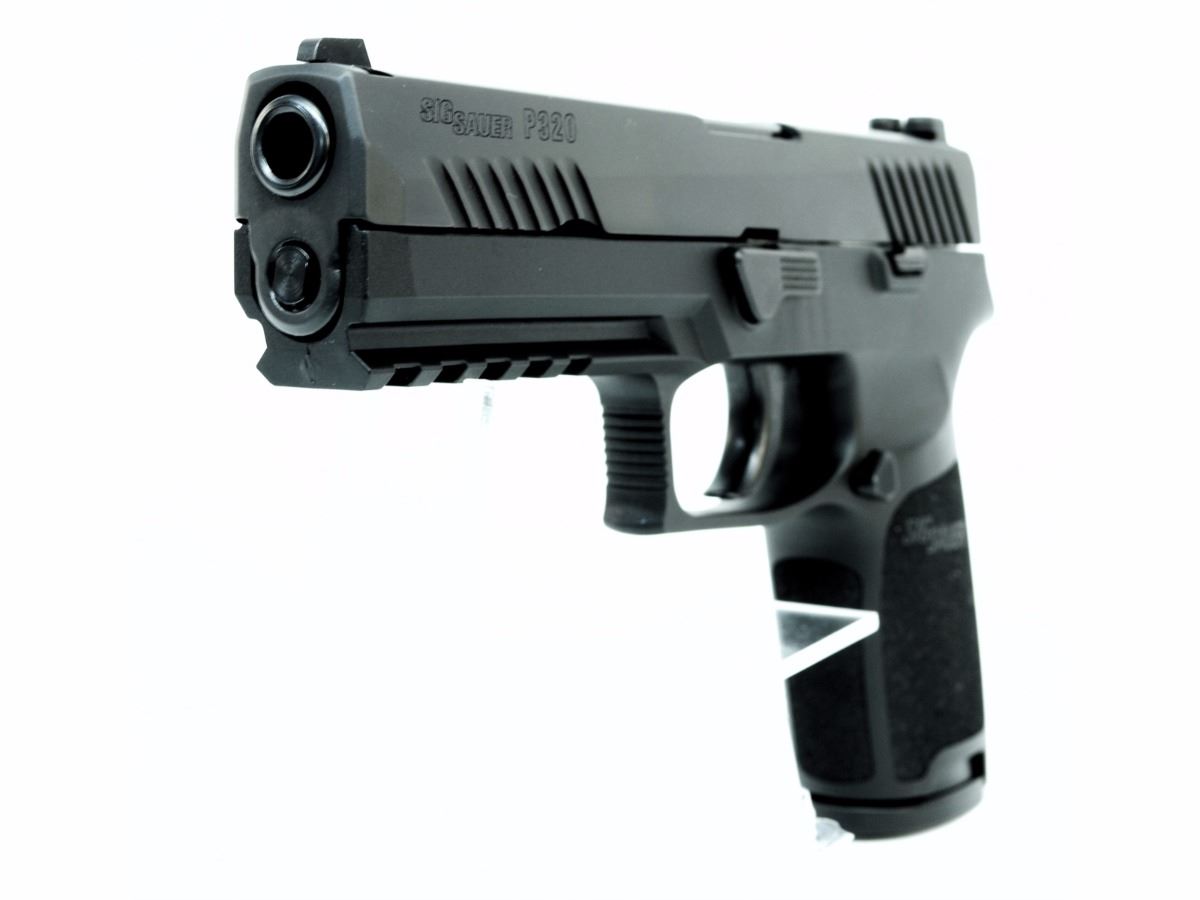 STOCK 2221-0585-G1, SIGC320F-9-B-10, P320, 9MM, PISTOL, FULL SIZE, 4.7” BARREL, NITRON BLACK, DAO, CONTRAST SIGHTS, MODULAR POLYMER GRIP, (2) 10RD STEEL MAG, ACCESSORY RAIL, N.I.B SN. 58B085XXX