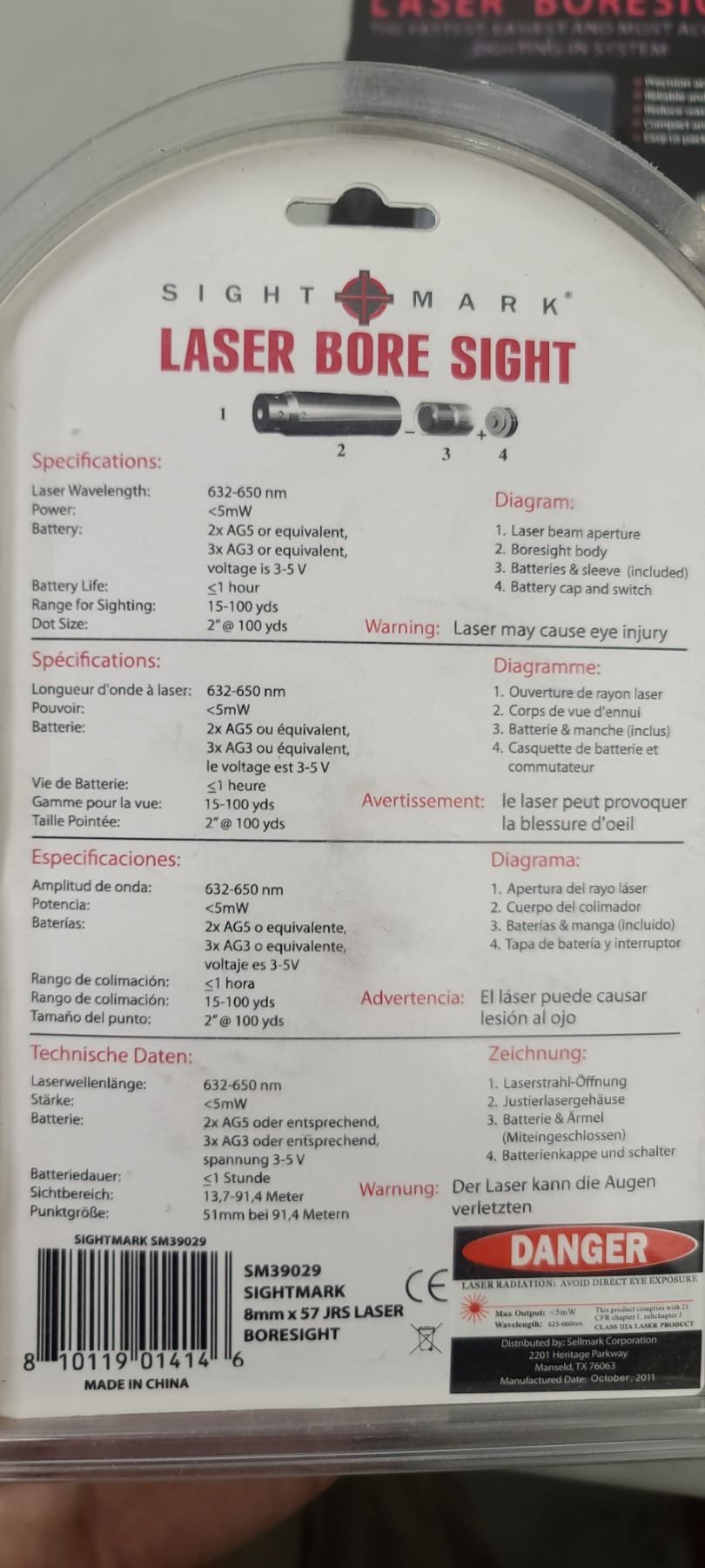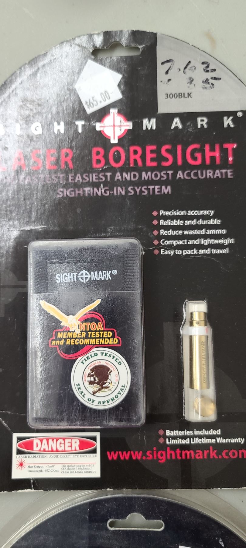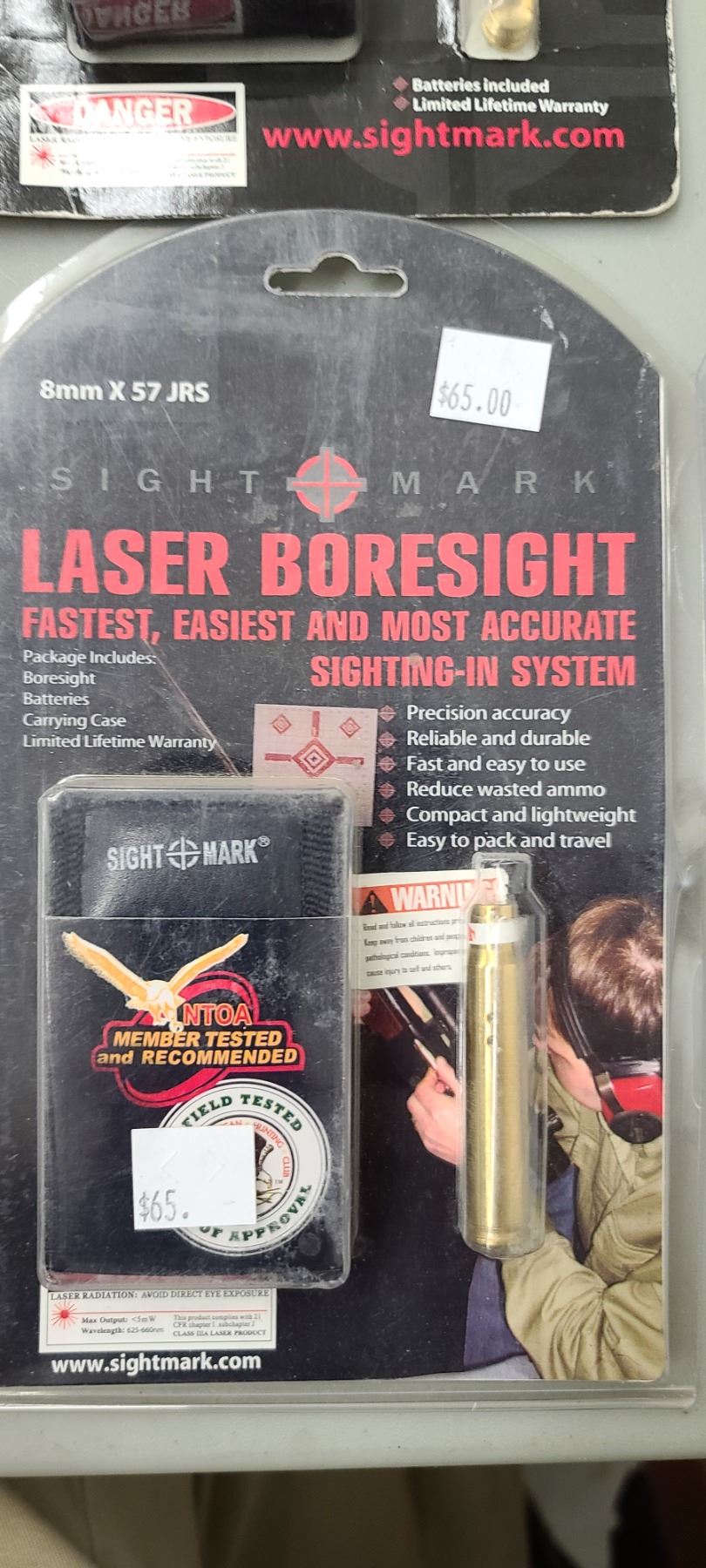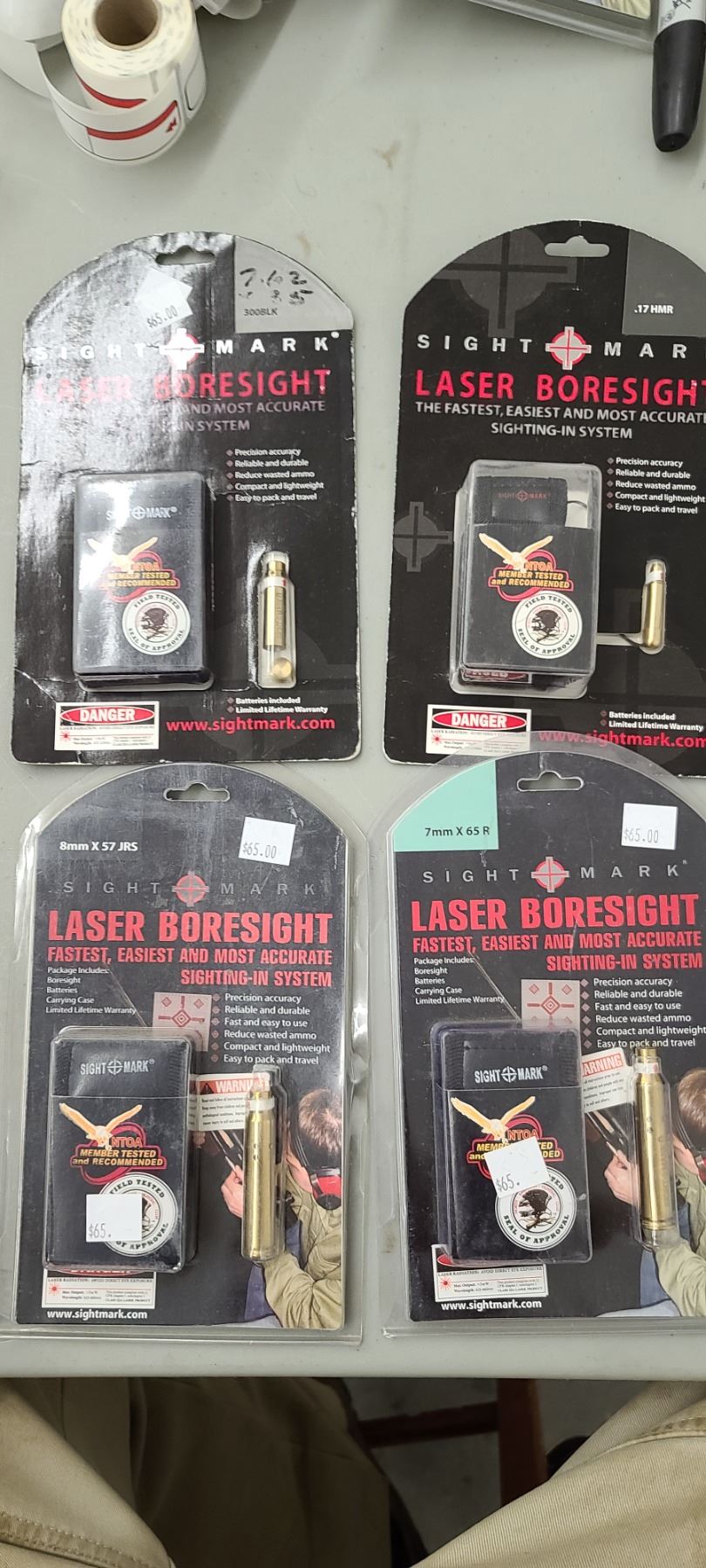 SIGHT MARK LASER BORESIGHT QTY 4. SIZES: 300BLK, 8MMX57JRS, 7MMX6.5R, .17H Total retail $270