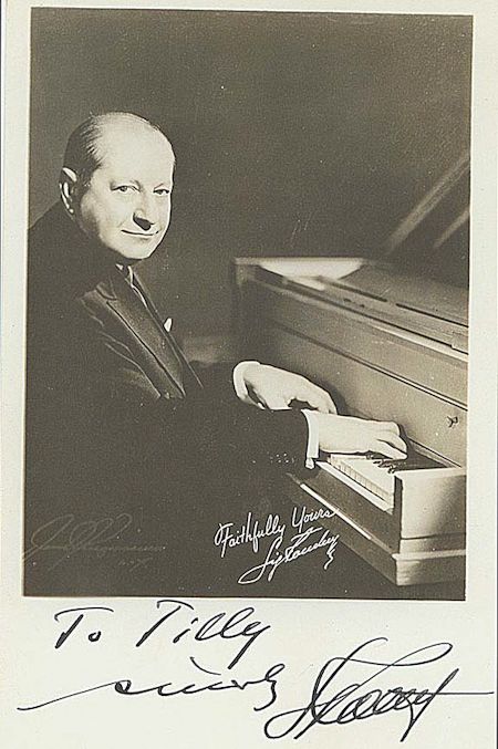 (1887 - 1951) American composer of music for operettas, as well as his famous "Desert Song". I.S.P. 3 1/2" x 5 1/2" b/w, a nice pose seated at his piano, boldly inscribed and signed in the white bottom margin. Fine.
