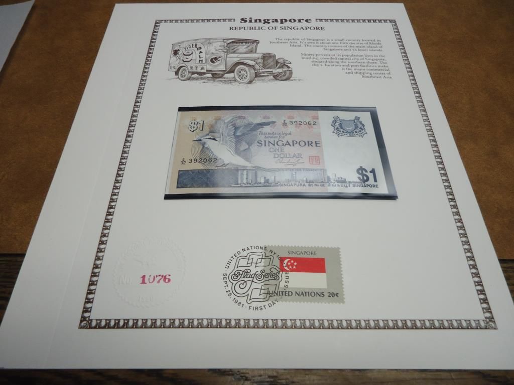 SIGNAPORE $1 CRISP UNC CURRENCY & STAMP SET