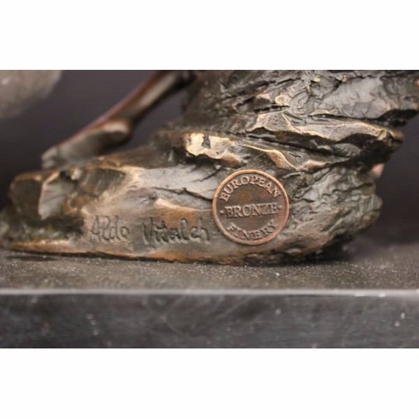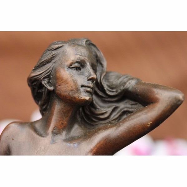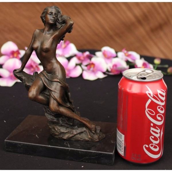 The Exotic Blowing In the Wind Pose Rarely an artist is able to capture an exotic pose of a beauty combined with the elegance of a forgotten past. However, Aldo Vitale did just this. This carefree beauty sits atop a rock enclosure enjoying a light breeze. Vitale's talent and attention is a combination of elegance and exoticness that brings out the striking beauty of this magnificent work of art. Sitting on a fine marble base, this piece is superbly created by renowned sculpture artist Aldo Vitale of Italy. Aldo Vitale has particular interest in creating elegant erotic nudity sculptures tastefully done with immense attention to its details. Please note: This is not a reproduction of this fine work of art, rather the original pure bronze statue signed by the artist. Condition: This sculpture is in a very good condition Inventory. Bronze Dimensions with Marble Base:Height 9" x Width 6 1/2" Marble size: 6 1/2" X 4" Height without base: 8" Weight : 8 LBS Inventory : 1535S33151