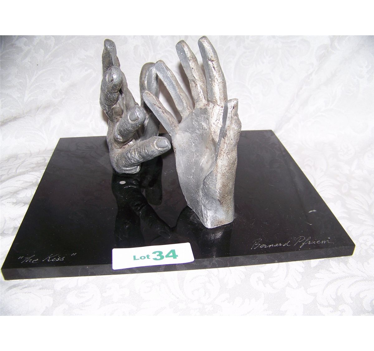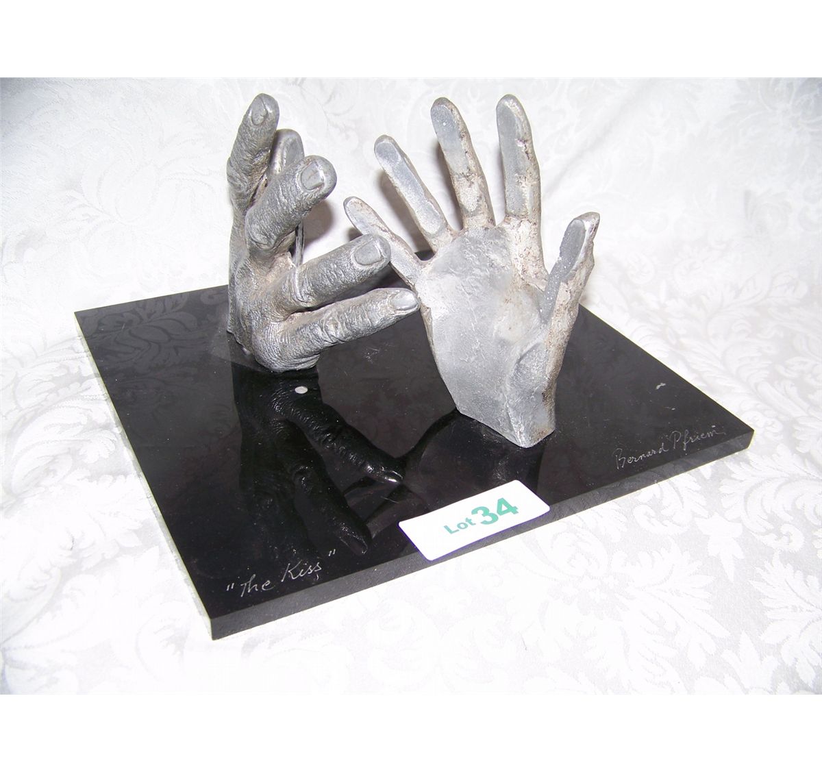 SIGNED ARTWORK BASE, THE KISS.. PAIR OF HANDS