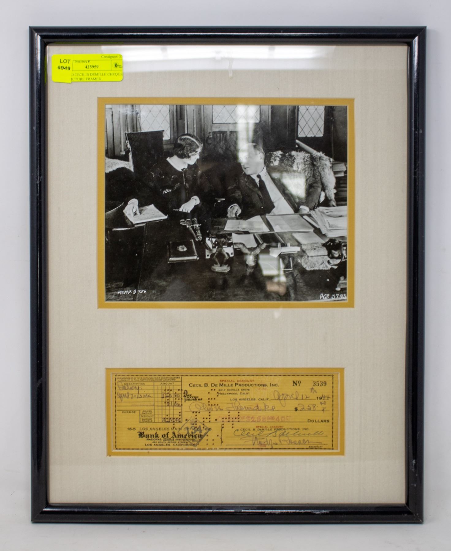 SIGNED CECIL B DEMILLE CHEQUE AND PICTURE FRAMED