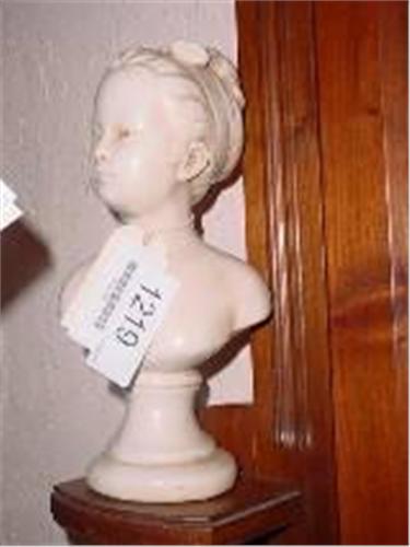 SIGNED CHALKWARE BUST OF WOMAN.10.5"