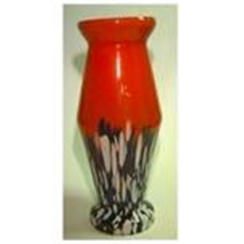 SIGNED Czech Vase. Main color is red and it is hard to see in picture, but it is not black and white, but it is cobalt and white at the bottom. Perfect condition. 8 1/4"" tall.