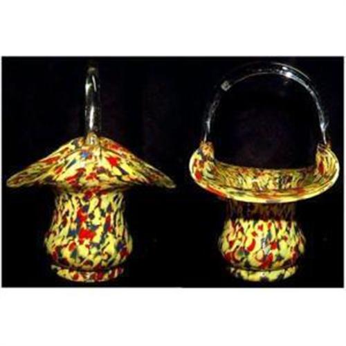 SIGNED Czech basket in end of day glass. It is in fabulous condition, and it has great colors. The basket flares out nicely to the sides. I have two photos of either side. It has a crystal hand applied handle. It has a sharp pontil mark. The total height is 7 1/4"" and is 5 1/2"" across, at its widest.