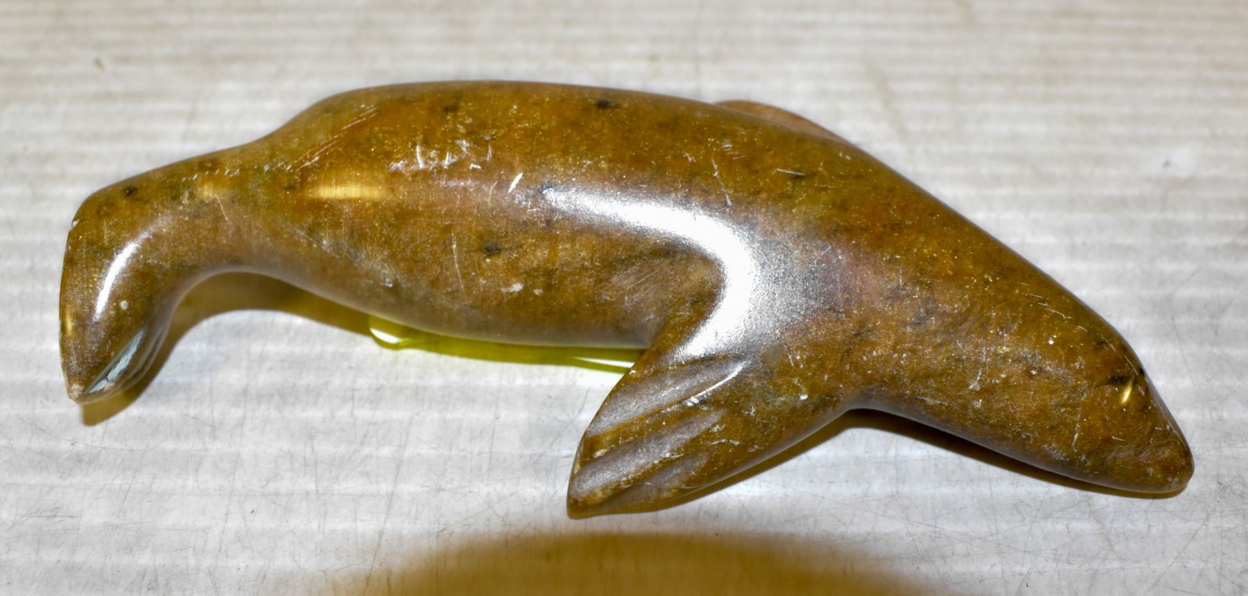 SIGNED DANCING WALRUS SOAPSTONE SCULPTURE