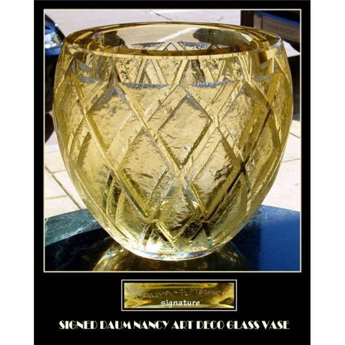 <tr><td><font size="2" face="Arial, Helvetica, sans-serif"><strong><font color="#000033">Title:</font></strong>SIGNED DAUM NANCY ART DECO GLASS VASE GL26 </font></td></tr>