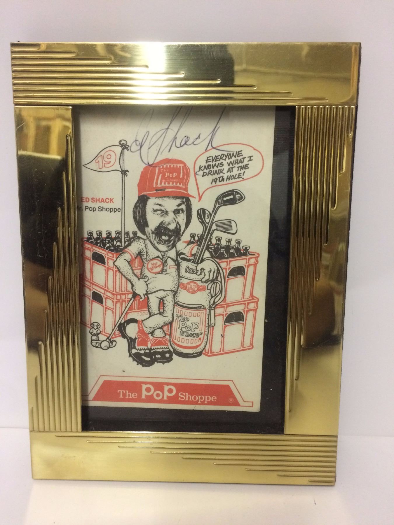 SIGNED EDDIE SHACK "THE POP SHOPPE" POSTCARD FRAMED