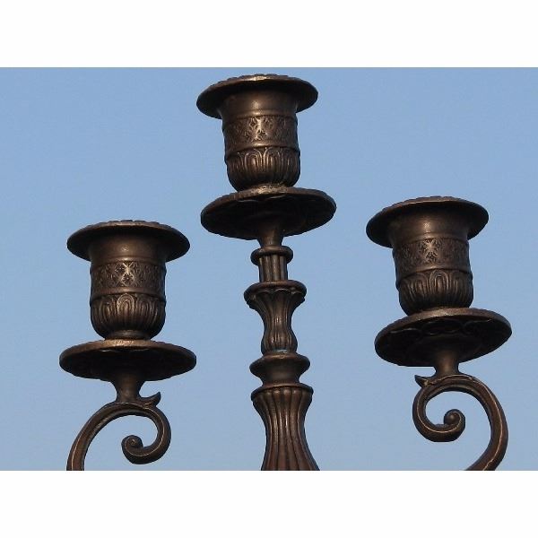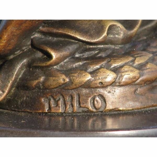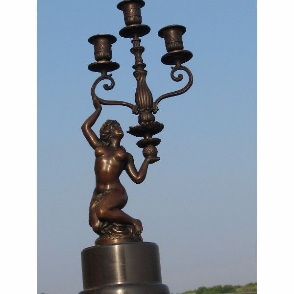 This candelabra is a superb reproduction from the past. Made with solid bronze , hand-painted and antiqued, this candelabra features flowing lines and rich details. The dreamy and sensuous beauty, combined with functions for everyday use, delivers the essence of Art Nouveau and provides a captivating visual focus. Measuring approx. 12" inches in length, this candelabra is heavy and very well-made. Signed by Artist Milo, a collectible dream.Condition: This sculpture is in a very good condition. Bronze Dimensions with Marble Base:Height 18 1/2" x Width 6"Marble Dimensions: Diameter 5".Height without base: 15 1/2 " Weight : 12 LBSInventory : 7360BCH01537 This candelabra is a superb reproduction from the past. Made with solid bronze , hand-painted and antiqued, this candelabra features flowing lines and rich details. The dreamy and sensuous beauty, combined with functions for everyday use, delivers the essence of Art Nouveau and provides a captivating visual focus. Measuring approx. 12" inches