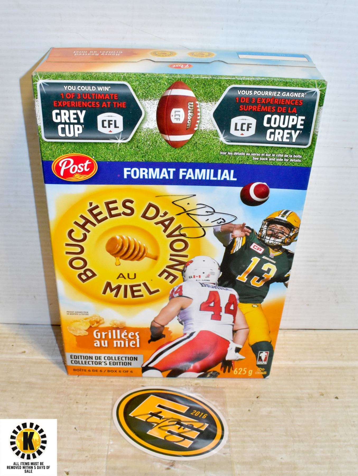 UNOPENED POST HONEY BUNCHES OF OATS CFL EDMONTON ESKIMOS * SIGNATURE UNVERIFED *
