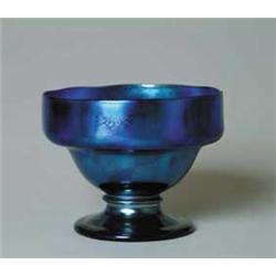 Lot 777 SIGNED LUSTRE ART BOWL. Wonderful footed bowl has bright blue iridescence and is signed on base with etched signature "Lustre Art Studios". SIZE: 7" dia x 5-1/2" t. CONDITION: Scratches to iridescence in bottom interior of bowl, otherwise very good. 5-70037 (800-1,200)