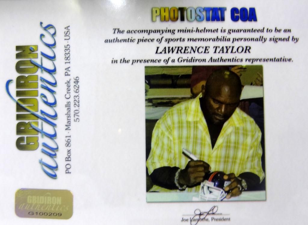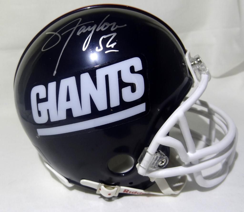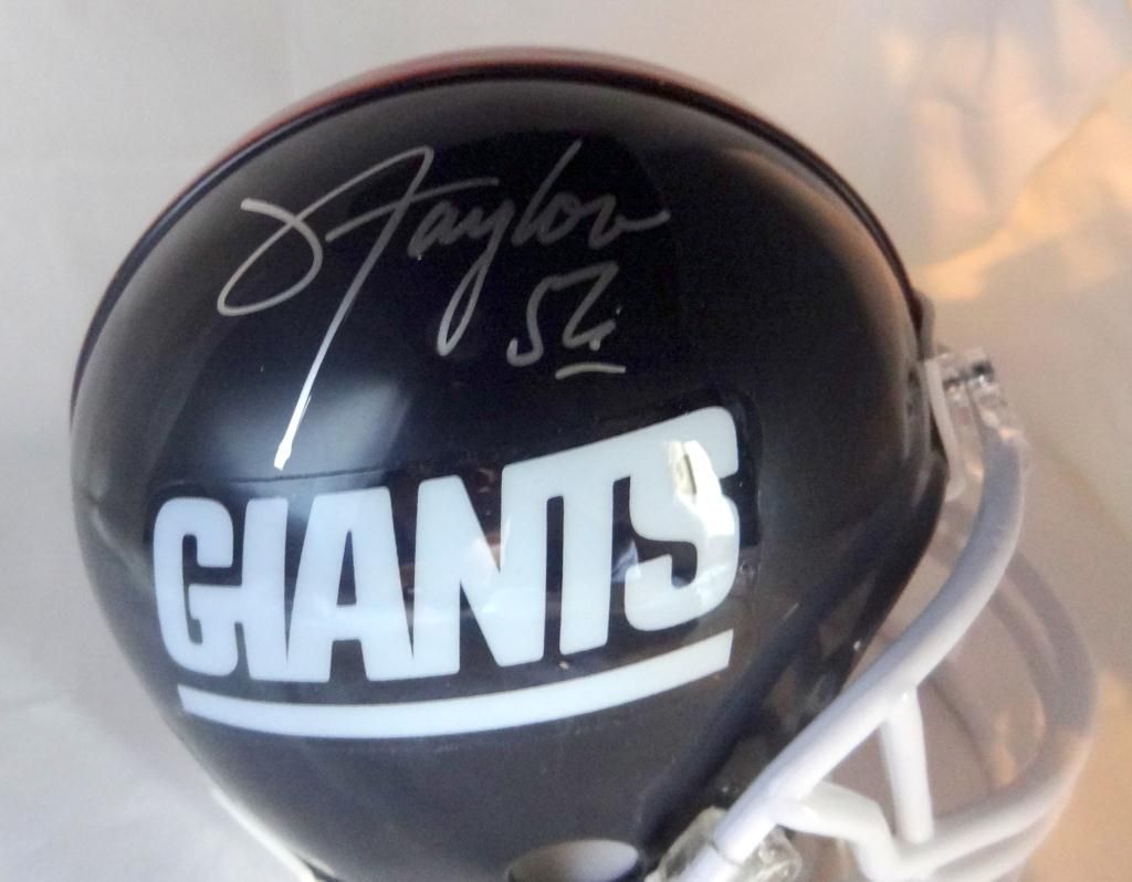 This is a signed New York Giants throwback mini helmet signed by Hall of Fame LB Lawrence Taylor. This mini helmet comes with a certificate of authenticity from Gridiron Authentics.