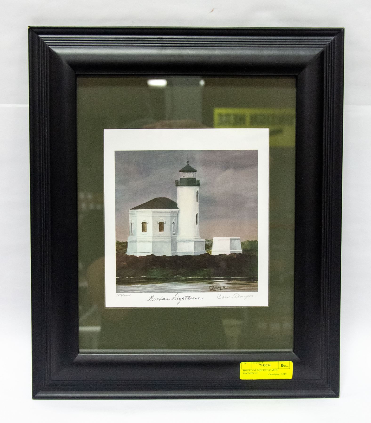 PRINT. BANDON LIGHTHOUSE. FRAMED AND MATTED. SIGNED NUMBERED CAROL THOMPSON WORLD RENOWNED ARTIST PRINT. **ALL ITEMS MUST BE REMOVED BY 5PM SATURDAY, MARCH 18TH 2023. ALL REMAINING ITEMS WILL BE SUBJECT TO A $6.00 PER DAY STORAGE CHARGE. ANY ITEMS REMAINING AFTER MONDAY, APRIL 3RD, 2023 WILL BE CONSIDERED FORFEITED. NO REFUNDS WILL BE ISSUED FOR FORFEITED ITEMS. TO SCHEDULE A PICK UP APPOINTMENT CLICK HERE