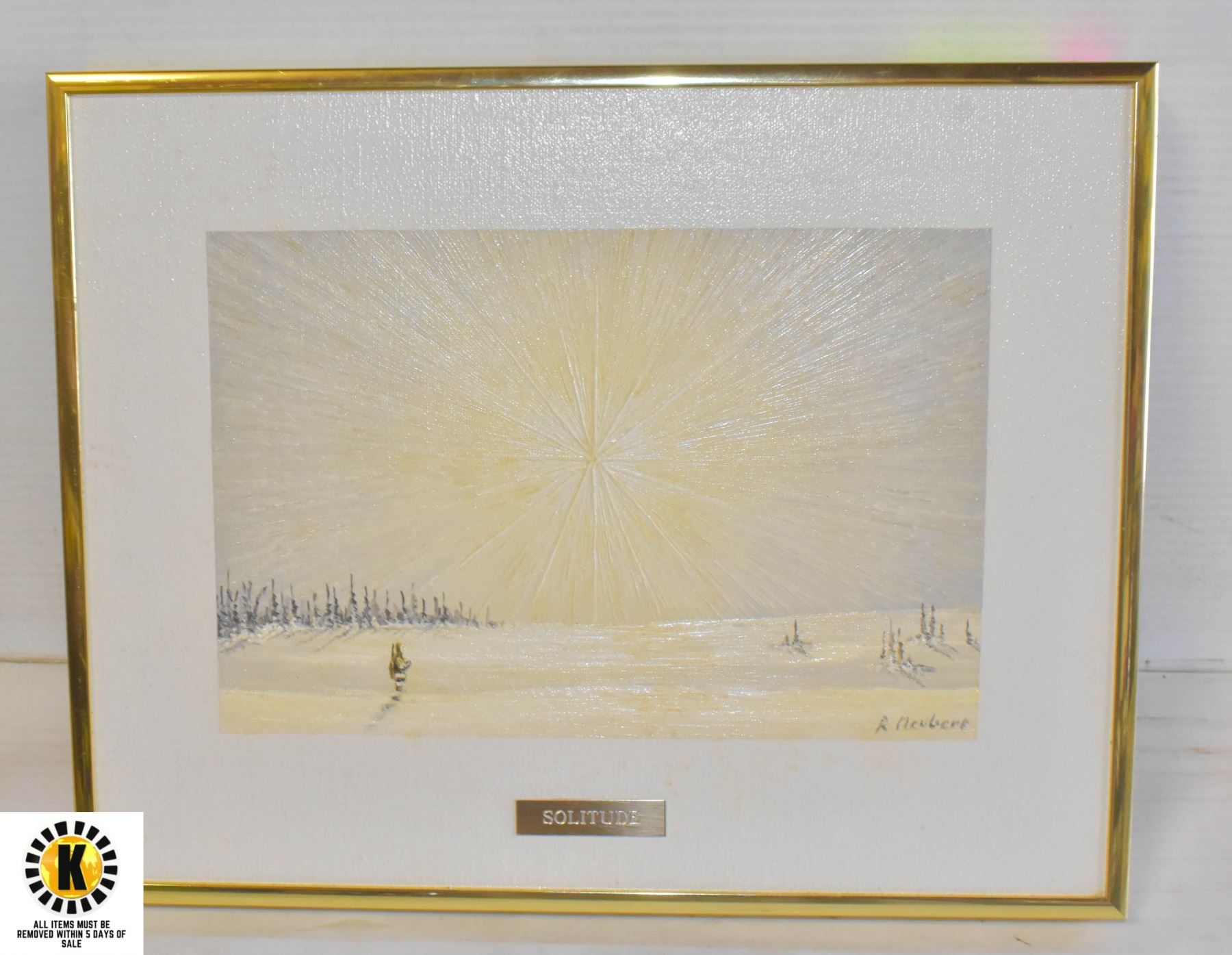 CERTIFIED OIL ON CANVAS PAINTING TITLED SOLITUDE BY RENOWNED CANADIAN ARTIST RUDY NEUBERT. ALSO CANVAS STAMPED AND WITH SIGNED CERTIFICATE OF AUTHENTICITY