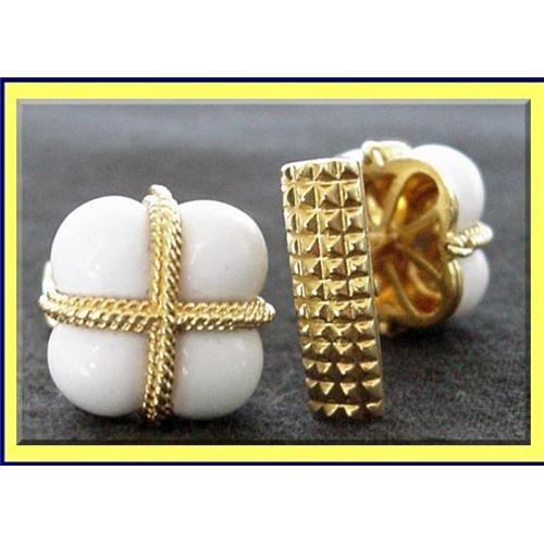 Beautifully designed as though an organic gift parcelled up in gold. Superb workmanship, for which Schlumberger was famous. Every detail from front to back, the minutely worked gold 'jewels' on the surface, to the openwork back of the studs. Enamelling is rich and pearly. Classic elegance.