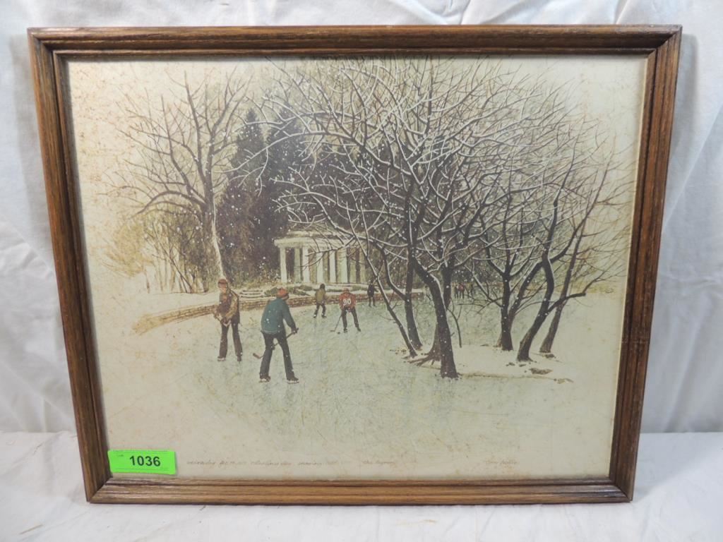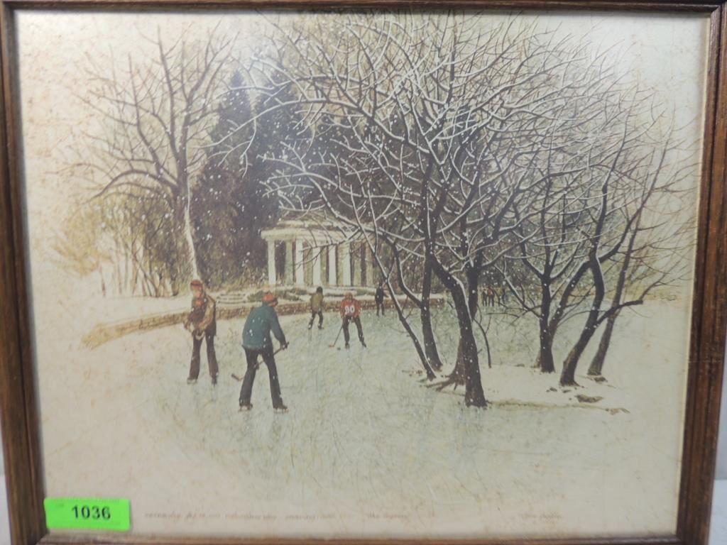 WEDNESDAY FEB 14TH 1973 BALENTINES DAY SNOWING COLD 12:30 THE LAGOON TOM HEFLIN PRINT, FRAMED DECORATIVE AS SHOWN SEE PHOTO FOR MORE DETAILS.