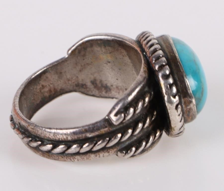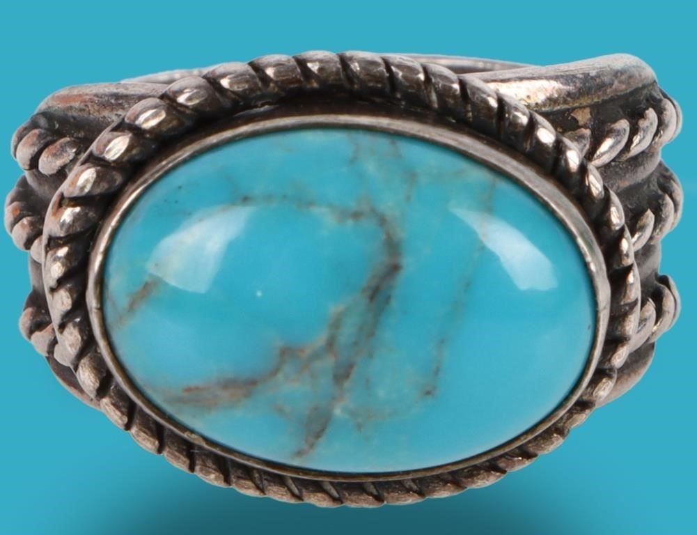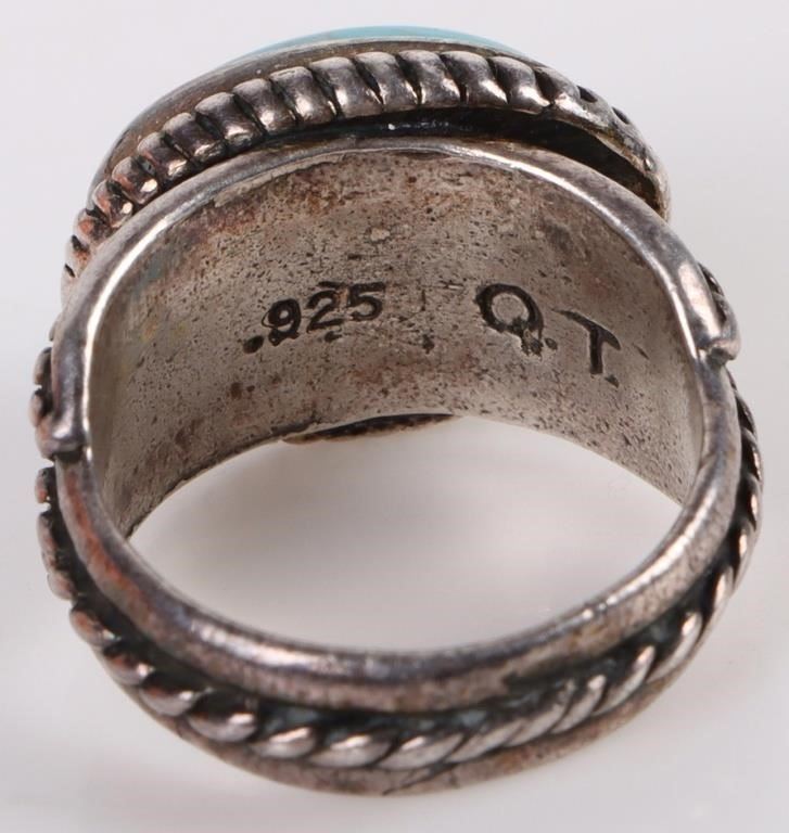 Signed turquoise southwest style sterling silver ladies ring signed & quot; Q. T.& quot;