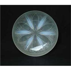 Lot 621 SIGNED VERLYS BOWL. Frosted bowl with raised opalescent feet. SIZE: 11-3/4” dia. CONDITION: Very good to excellent. 5-67018 (200-400)