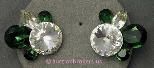 SIGNED VINTAGE FASHION CLIP STYLE EARRINGS BY NELLY IN COLORED AND IRIDESCENT STONES. THESE VINTAGE PIECES HAVE BEEN WELL CARED FOR IN A SAFETY DEPOSIT BOX.