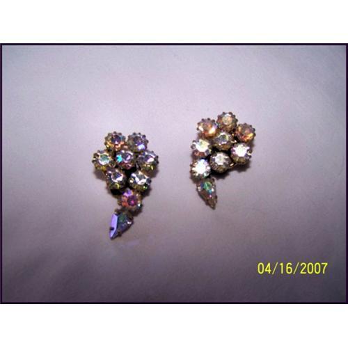 Up for sale are a pain of STUNNING signed ~West Germany~ Aurora Borealis Rhinestone Clip on Earrings. They radiate with colors in the light. They are in excellent condition both front and back. There are no missing or dead stones. They are prong set in a goldtone setting. The earrings are signed but I have to tell you it took 2 magnifying glasses for me to read it because the words are right up against the inside of the backing.