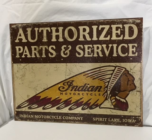 INDIAN MOTORCYCLES, TIN REPRO SIGN, APPROX 12 "