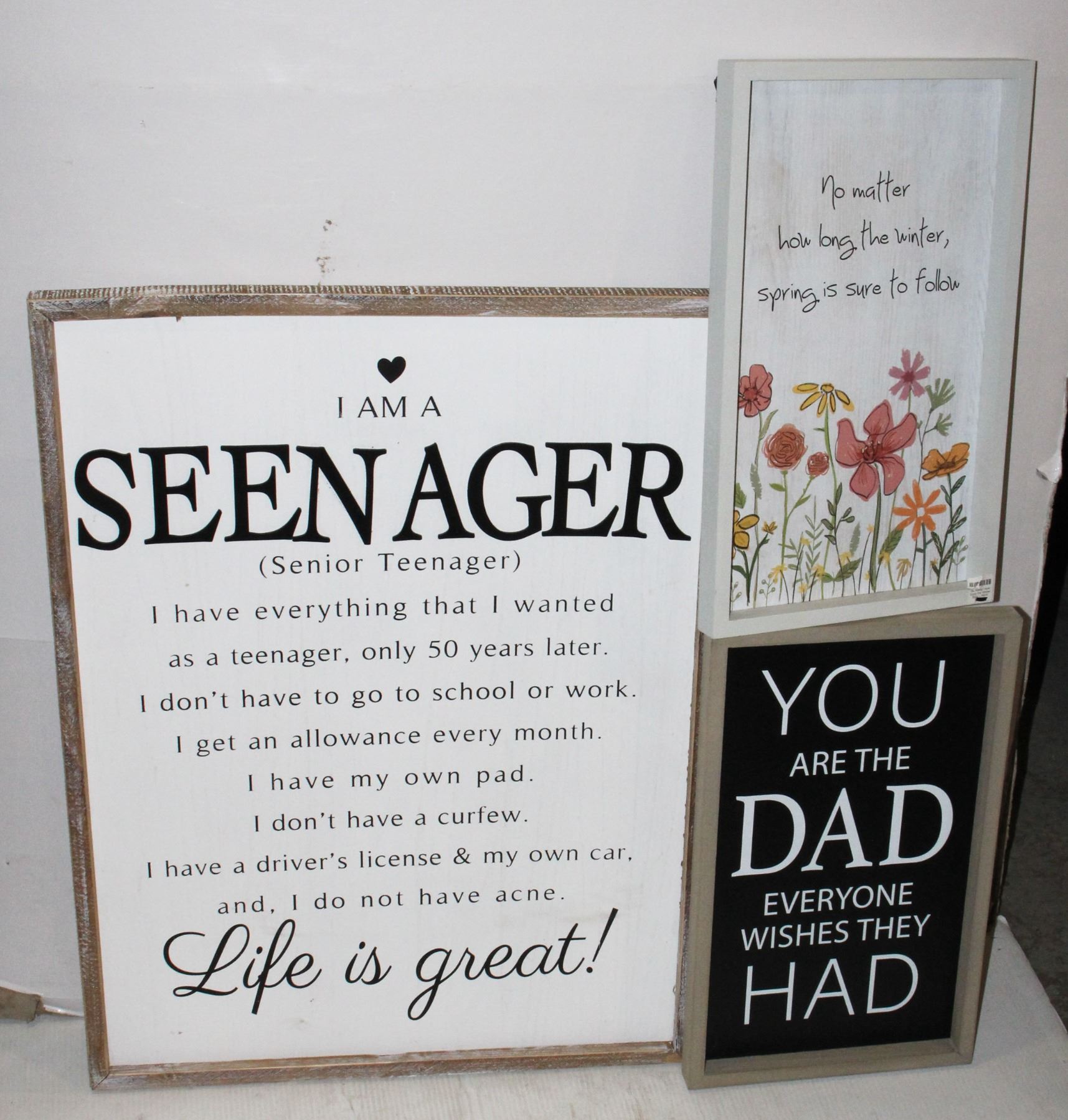 SIGNS LOT: LARGE “SEENAGER” SIGN, SPRING SIGN, DAD