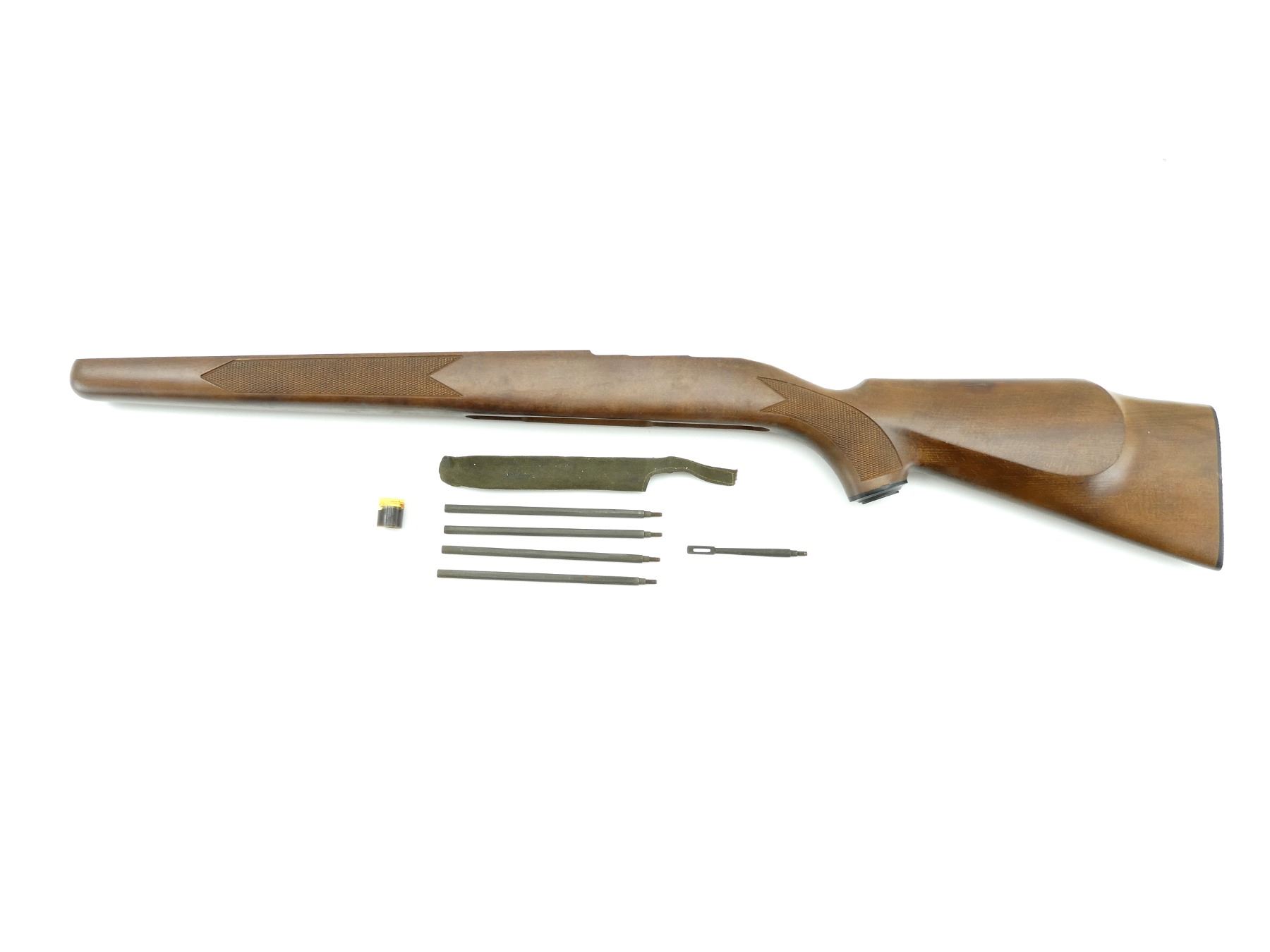 LOT INCLUDES; (1) UNKNOWN MAUSER STOCK, WOODEN CONSTRUCTION, CHECKERED, UNMARKED, WITH RH CHEEK REST, OVERALL LENGTH APPROX. 32.5", MAY REQUIRE FITTING. SEE PHOTOS.