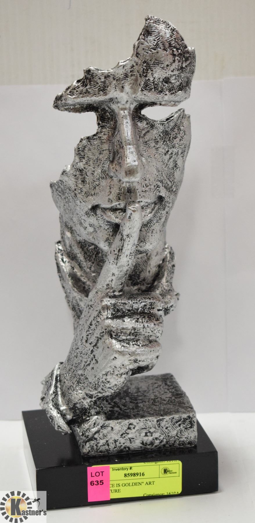 "SILENCE IS GOLDEN" ART SCULPTURE APPROX 14" TALL