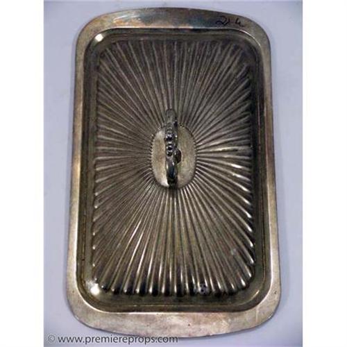 SILENT HILL - This is a tarnished silver dish top with handle that was used on-screen for set decoration. The intricately detailed worn yet beautiful dish top is tarnished and stained on both sides, and measures 12" x 7" x 3". Don't miss this opportunity to own a beautiful prop taken from the set of SILENT HILL.(SHL2132)