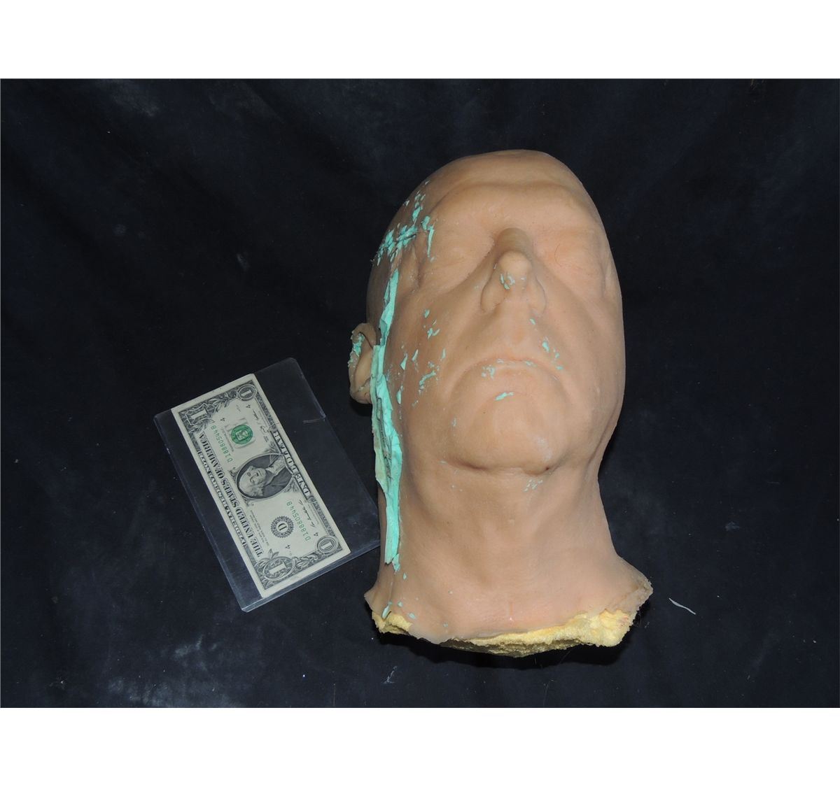 This is a silicone severed head that had raw silicone splashed on it.