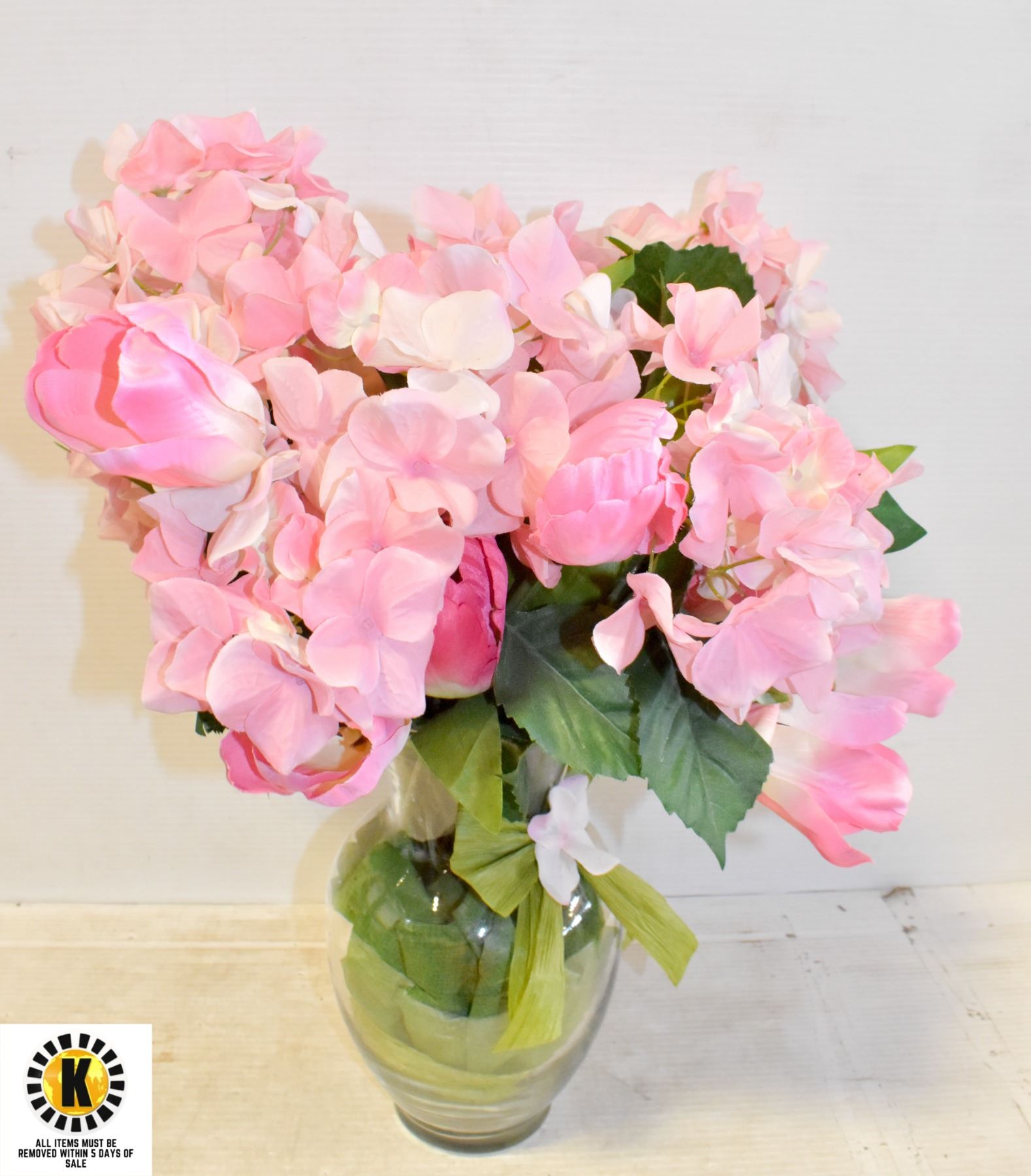 SILK FLOWER BOUQUET IN GLASS VASE