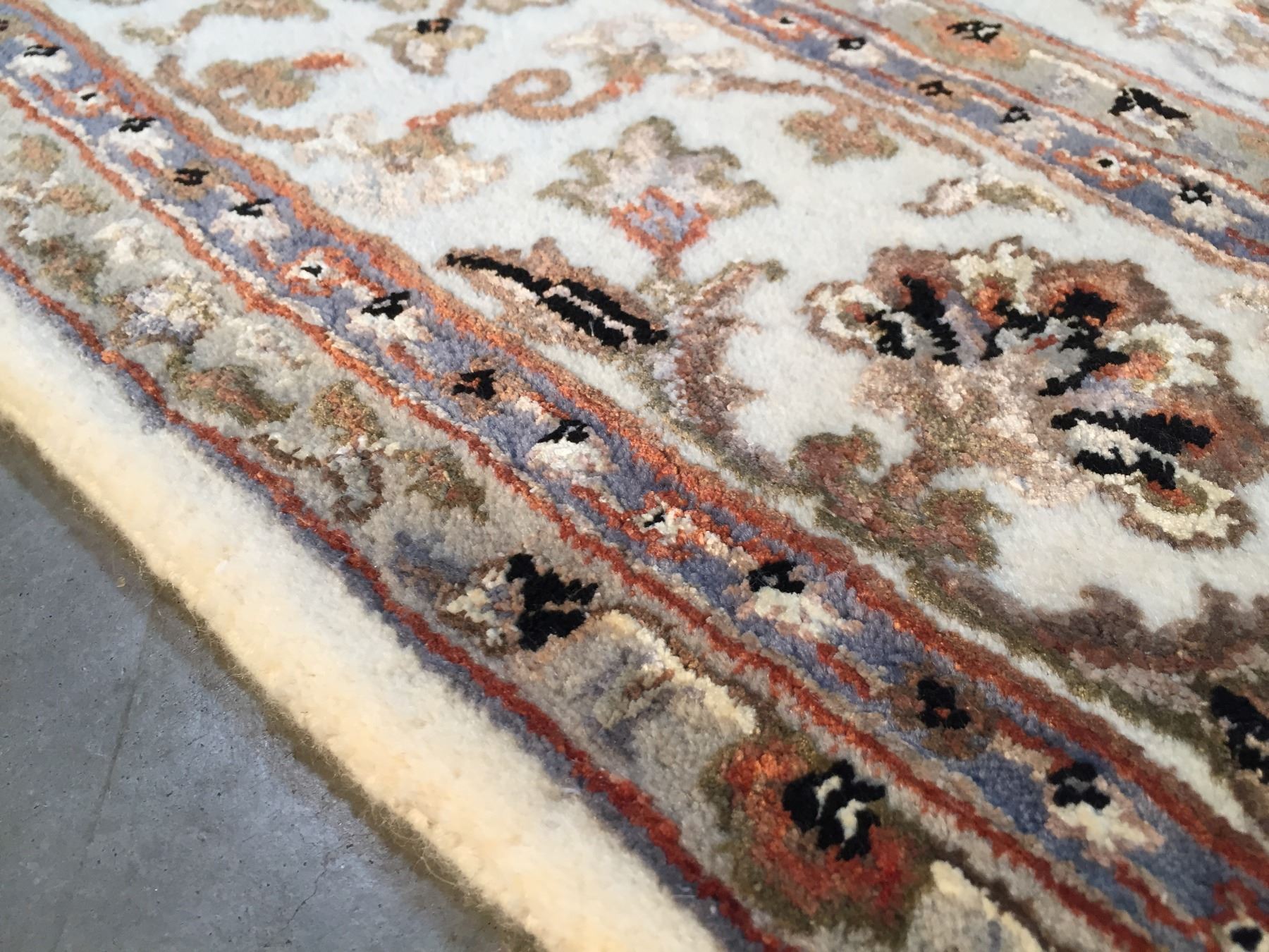 4'.1"X6.1" Persian Kashan medallion design silk and wool rug, in Ivory, copper and multi accent colors, vege dye natural wool and silk pile,cotton foundation,hand knotted in India