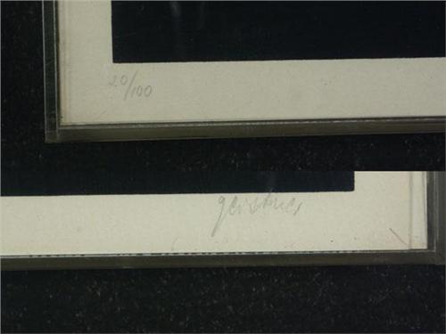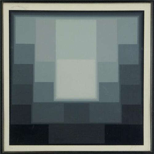 SILKSCREEN 15 3/4'' x 15 3/4'', Karl Gerstner (1930-), Swiss. ''Color Levels (#2 of 5)''. 1967. Signed in pencil lower right, numbered 20/100 lower left. Paper label on the verso lists information. Placed in a plexiglass frame. Note scratches on plexiglass. Gerstner is a noted Swiss graphic designer. More info. in white binder.