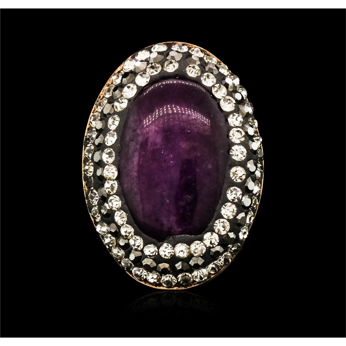 One electronically tested 925 silver ladies custom cast & assembled ring. The featured quench cracked quartz is set within tiered cubic zirconia bezels, completed by a three and one-half millimeter wide band. Bright and anodized finish. Identified with ma AIG Appraised at $1,000.00.