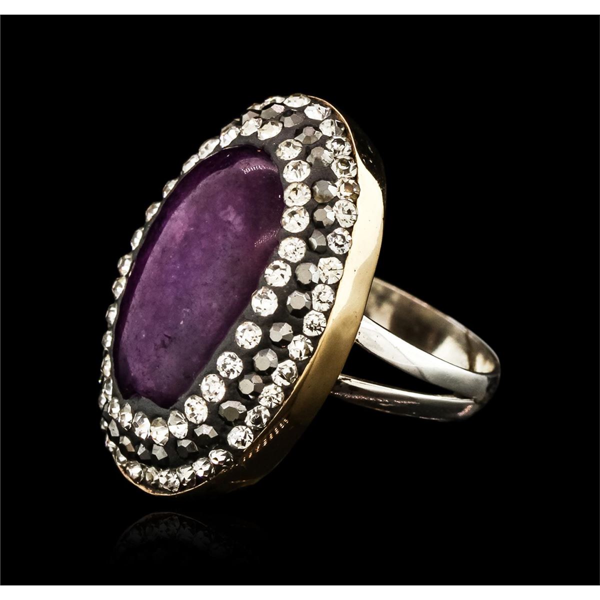 One electronically tested 925 silver ladies custom cast & assembled ring. The featured quench cracked quartz is set within tiered cubic zirconia bezels, completed by a three and one-half millimeter wide band. Bright and anodized finish. Identified with ma AIG Appraised at $1,000.00.