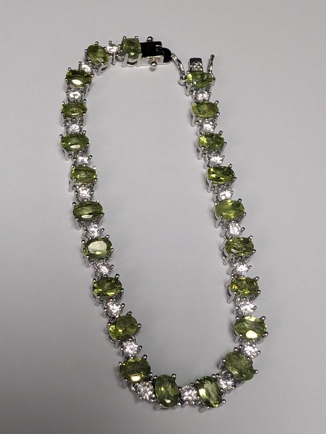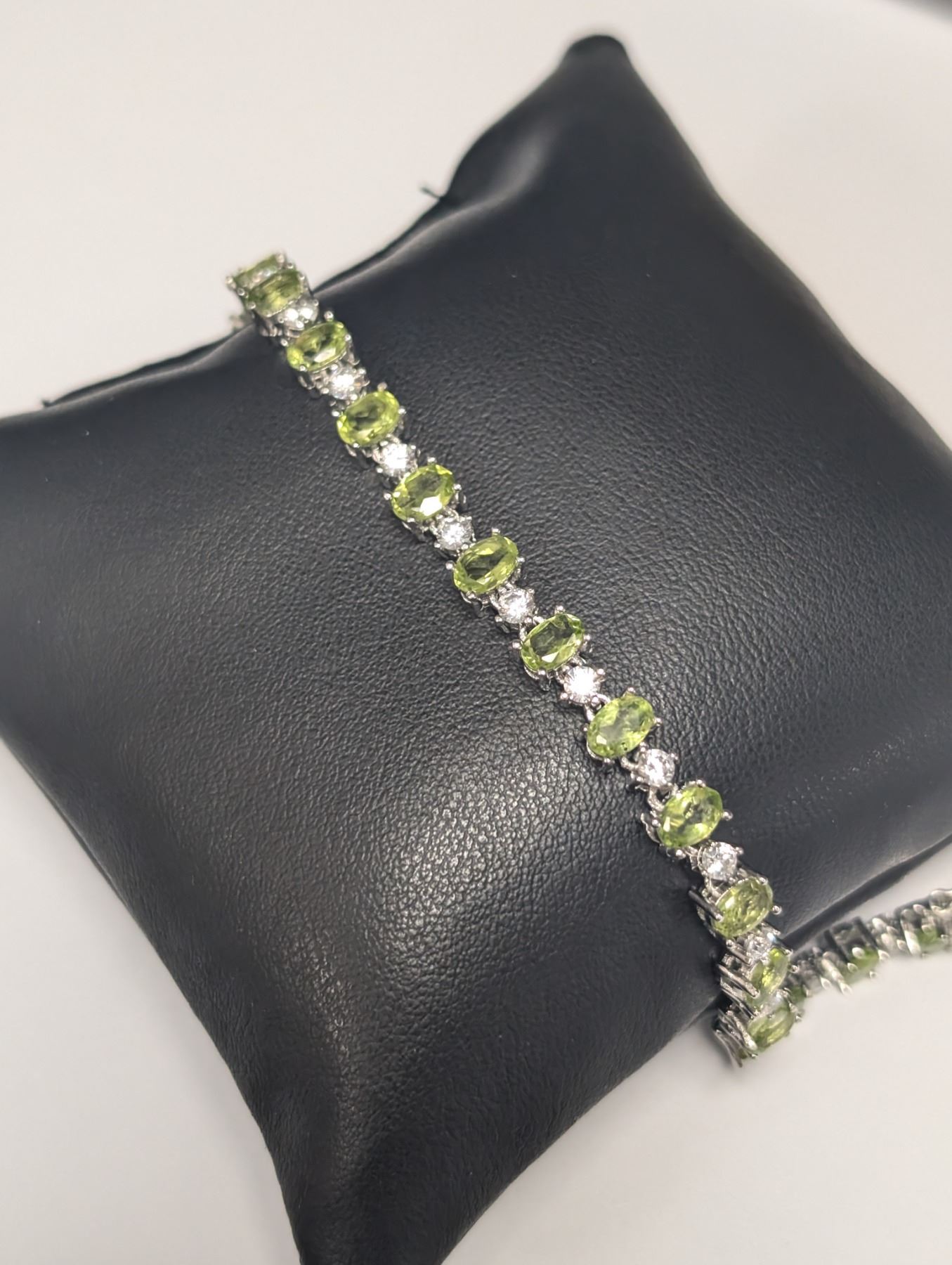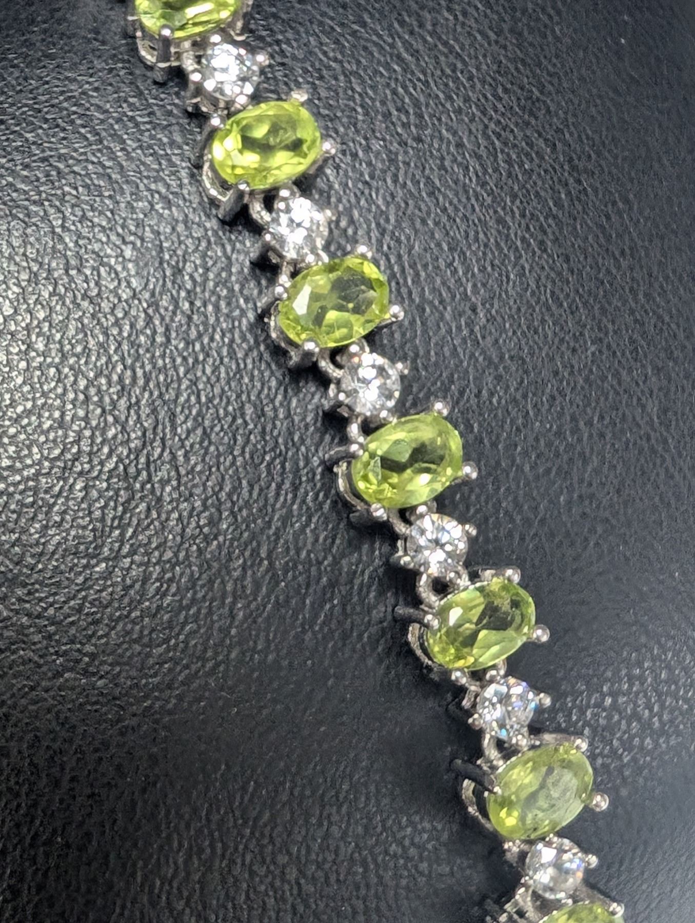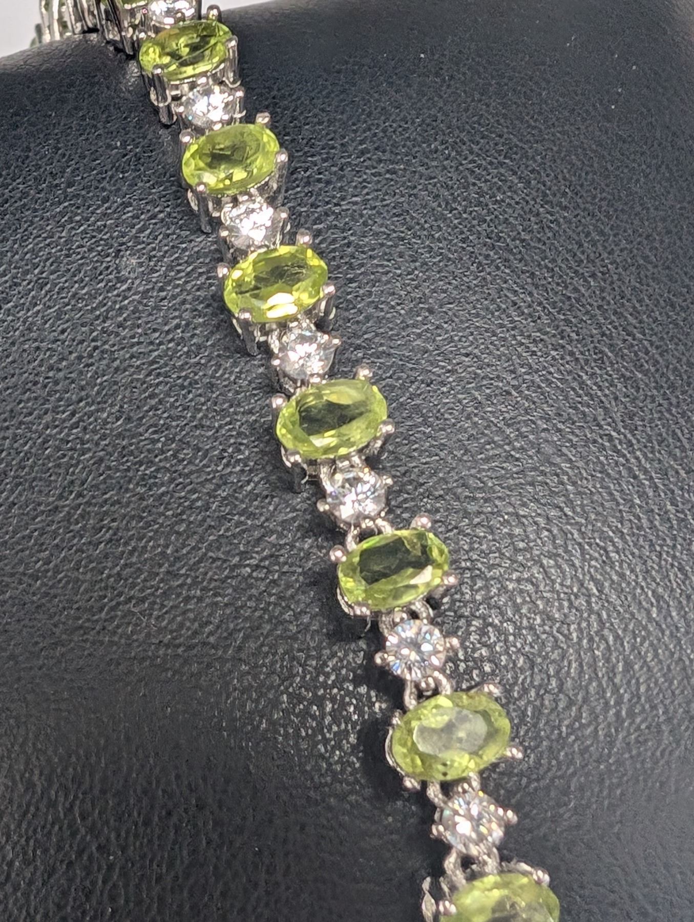 SILVER 14.19G PERIDOT 15.5CT & CZ 7.5" BRACELET