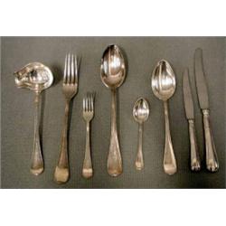 MATSILVERUPPSÄTTNING, 71 DELAR, SVENSK RUND MODELL, SÅSSKED, UPPLÄGGNINGSGAFFEL OCH SKED, 12 MATSKEDAR, 13 GAFFLAR, 12 KNIVAR, 10 SMÖRGÅSGAFFLAR, 9 SMÖRGÅSKNIVAR, 3 SMÖRKNIVAR, 7 KAFFESKEDAR, 2 SILLGAFFLAR, CG HALLBERG, STOCKHOLM 1952
