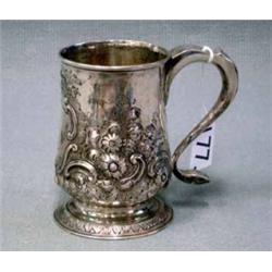 MUGG, SVÄNGT HANDTAG, DRIVEN BLOMSTERDEKOR PÅ LIVET, NEW CASTLE ENGLAND 1788, H14