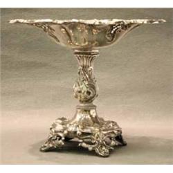 FRUKTSKÅL, 4 GENOMBRUTNA ROCAILLEFORMADE FÖTTER, BALUSTERFORMAD STAM, VÅGIG SKÅL, GENOMBRUTEN ROCAILLEDEKOR, GUSTAV MÖLLENBORG, STOCKHOLM 1854, H27