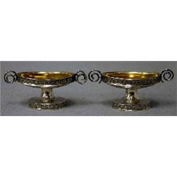 1 PAR SALTKAR, OVALA, DEKOR AV VINDRUVOR, SNURRADE HÄNKLAR, ITALIEN 1810/20-TAL, H5, B11