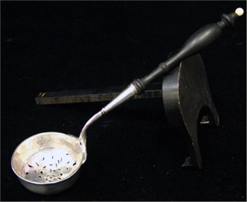 STRÖSOCKERSKED, BOTTEN MED DEKOR AV GENOMBRUTNA BLOMMOR, SVÄRTAT TRÄSKAFT, LARS BJUGG 1758-1812, JÖNKÖPING , L24