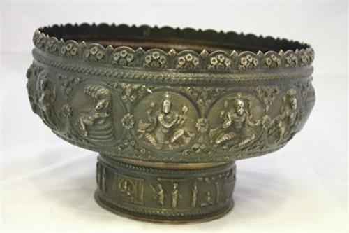 BÅLSKÅL PÅ FOT, DEKOR AV INDISKA GUDOMAR, GLASGOW 1899, H17, D27