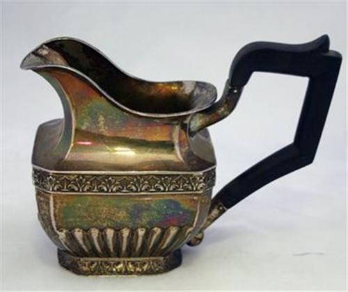 MJÖLKKANNA, DEKOR AV KNÄCKAR OCH BLAD, UPPSVÄNGT TRÄHANDTAG, SENEMPIR MOSKVA 1853, H12, B15