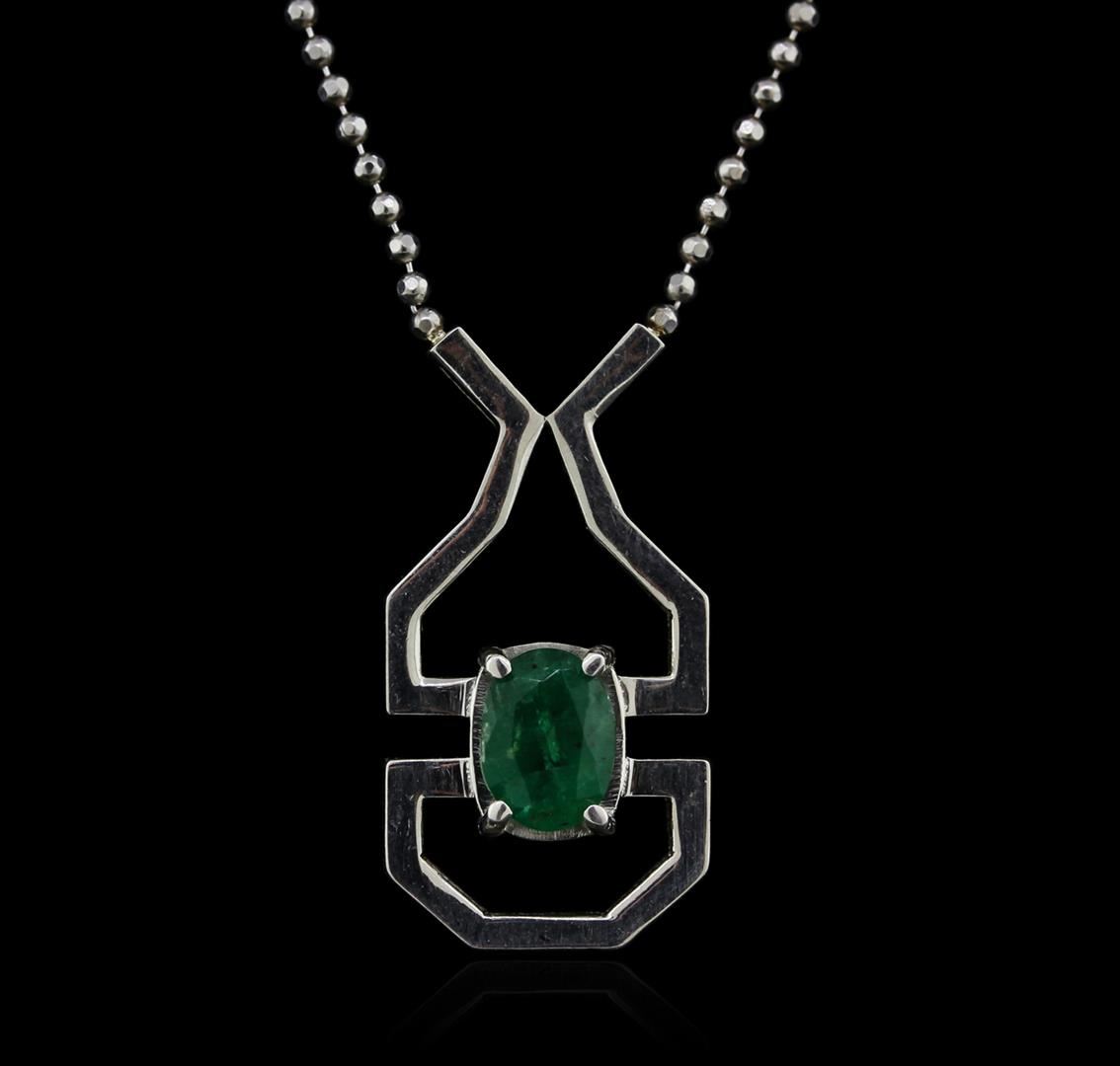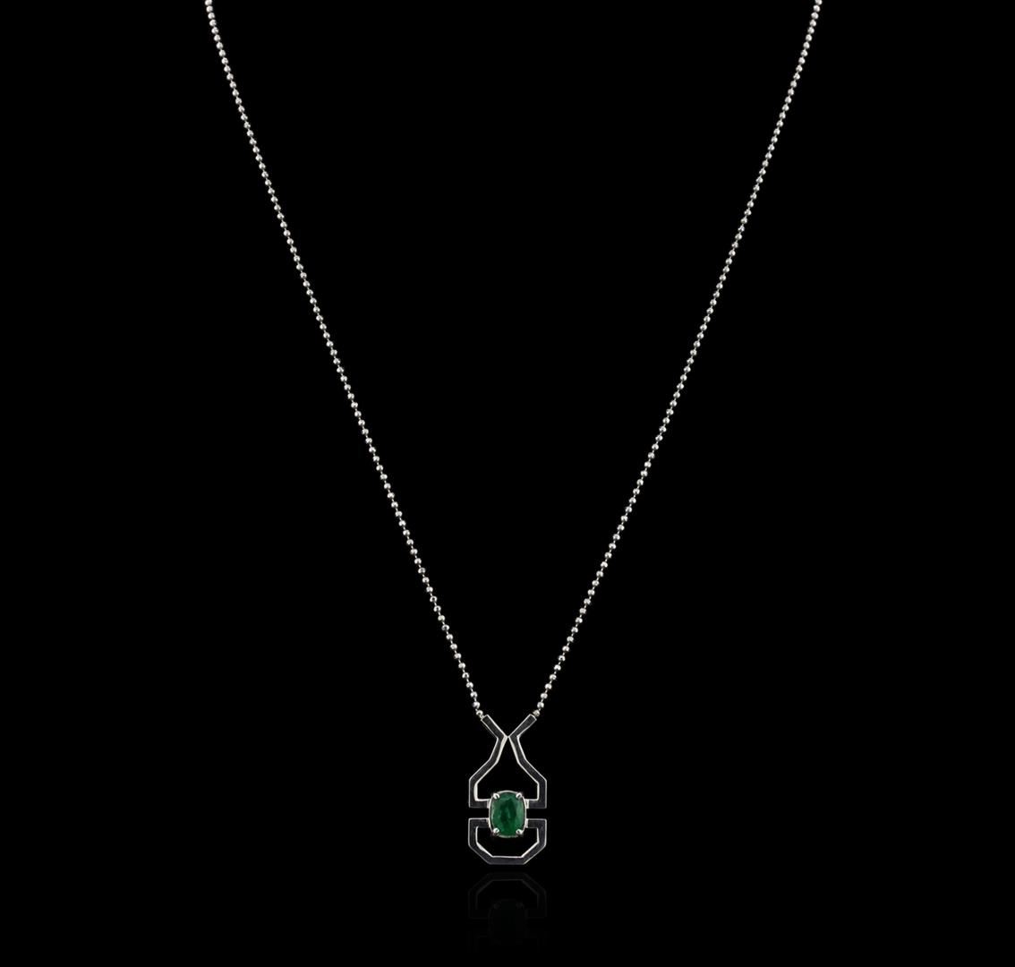 One necklace featuring: SILVER weighing 8.86 grams containing one emerald with a total weight of 2.00ct.