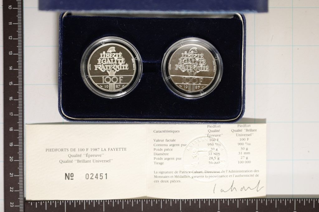 THE PROOF IS .950% SILVER, 31MM AND IS 28.5 GRAMS OF SILVER AND ONLY 50,000 MINTAGE, THE UNC IS .90% SILVER, 31MM AND IS 27 GRAMS OF SILVER WITH A MINTAGE OF ONLY 100,000. IN ORIGINAL MINT PACKAGING WITH CERTIFICATE. SET