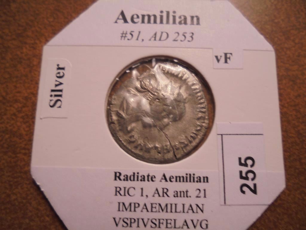 SILVER 253 A.D. AEMILIAN ANCIENT COIN VERY FINE