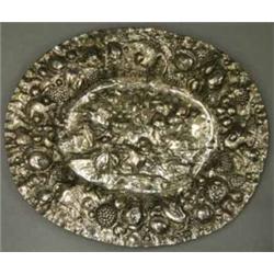 PRESENTERFAT, OVALT, DRIVEN DEKOR AV FRUKTER OCH FIGURSCEN I LANDSKAP, BAROCK, PETTER HENNING, STOCKHOLM 1695, B47, D40