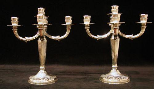 1 PAR KANDELABRAR, GODRONNERAD FOT OCH STAM, 4 SVÄNGDA LJUSARMAR, GUSTAVIANSK STIL, SPANSKT SILVER, H36