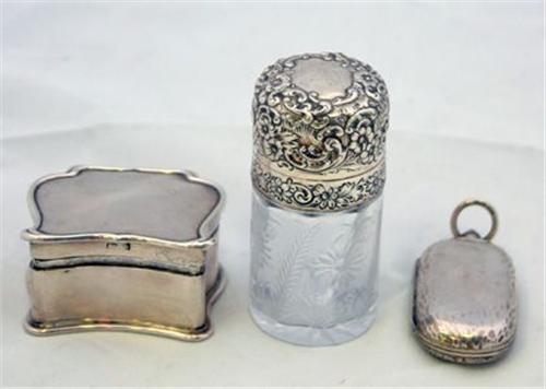 PARFYMFLAKONG, KRISTALL, BESLAG I STERLINGSILVER, ASK I ENGELSKT SILVER, BIRMINGHAM, FOTOGÖMMA, H3-8 (3)